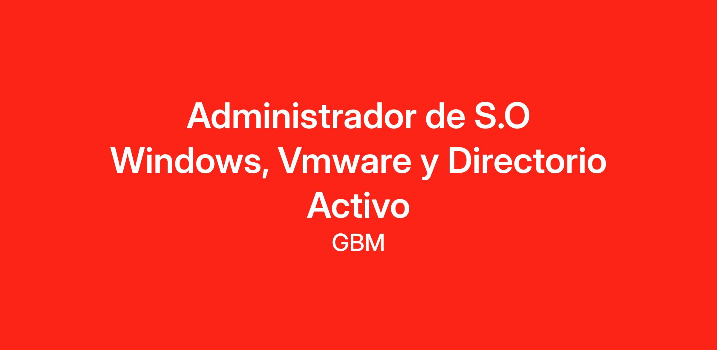 - Experiencia mínima requerida: 2-3 años de experiencia comprobable administrando Windows, Vmware y Directorio Activo.