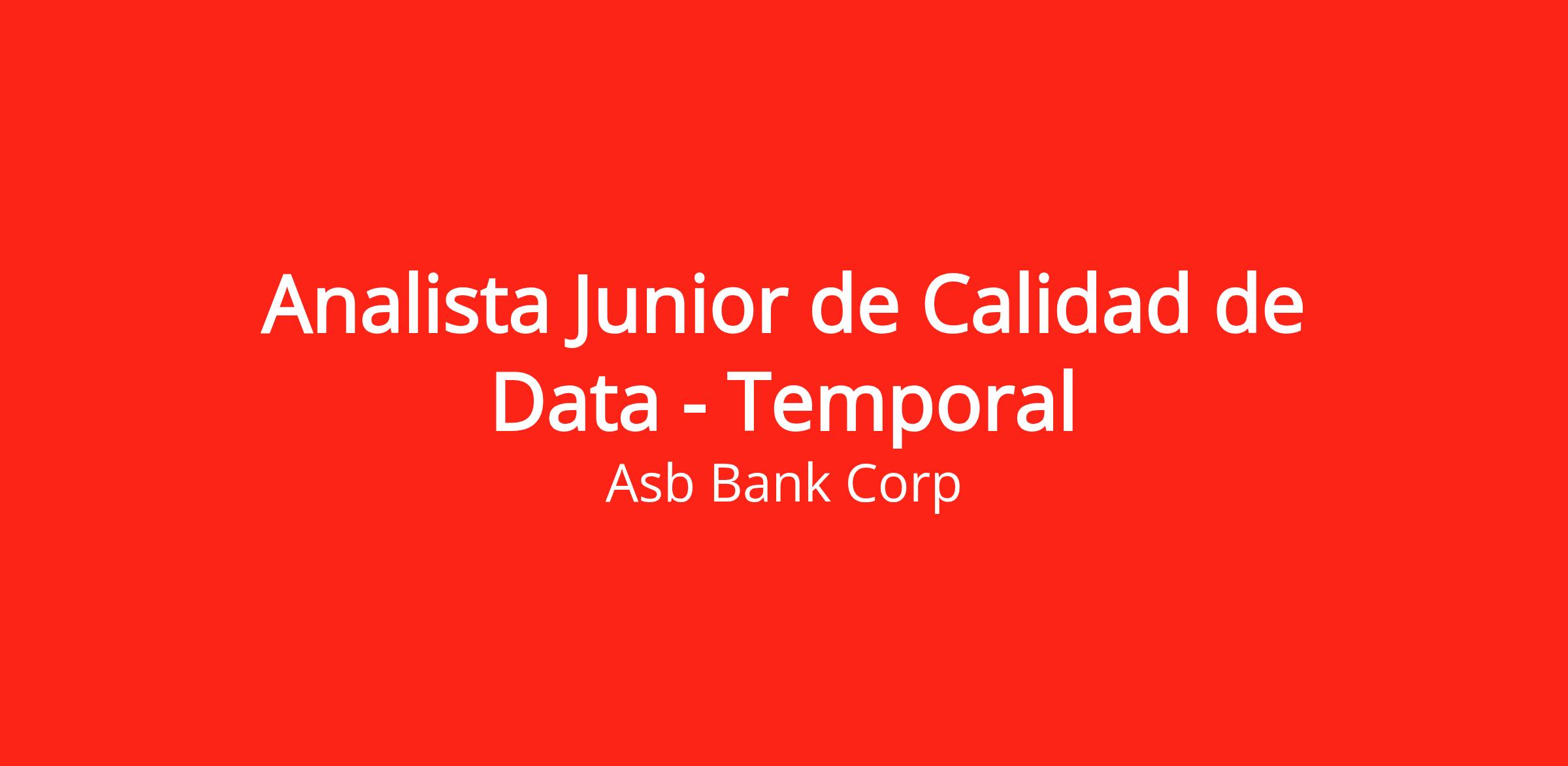 En ASB Bank buscamos talento para ocupar la posición de Analista Junior de Calidad de Data - Core cuya responsabilidad principal es asegurar la confiabilidad, integridad y consistencia de la información procesada por los sistemas operativos y de visualización, mediante la conciliación diaria, identificación de diferencias y corrección oportuna de errores que puedan afectar la toma de decisiones en las áreas usuarias.