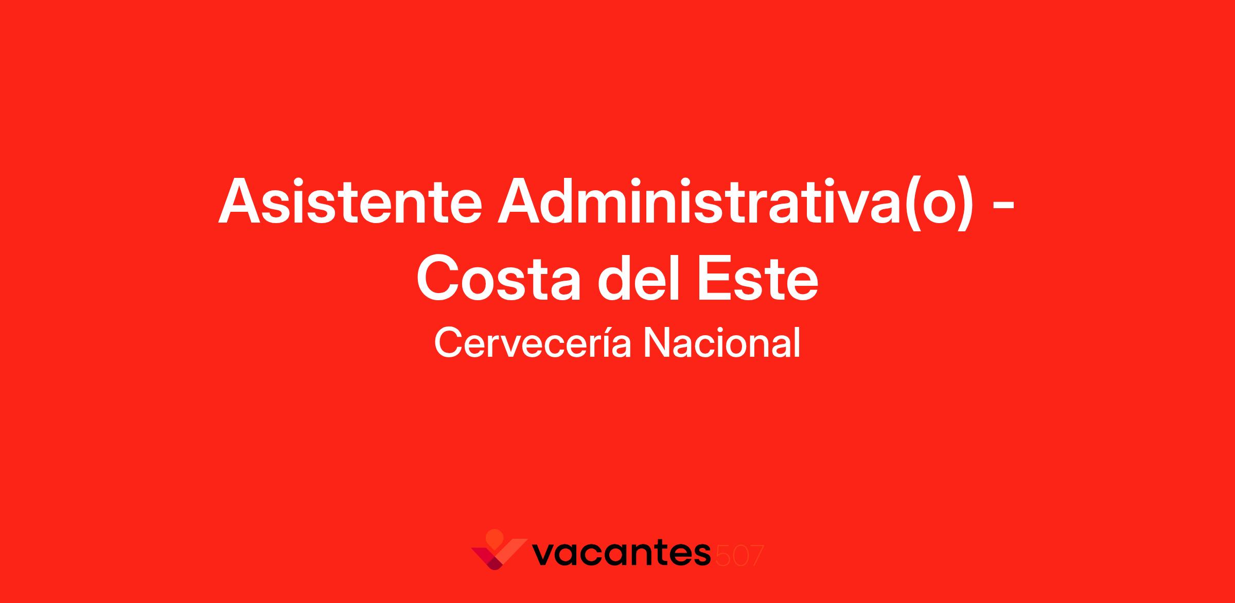 En Cervecería Nacional estamos en busqueda de un Asistente Administrativa(o) para nuestra oficinas administrativas en Costa del Este.