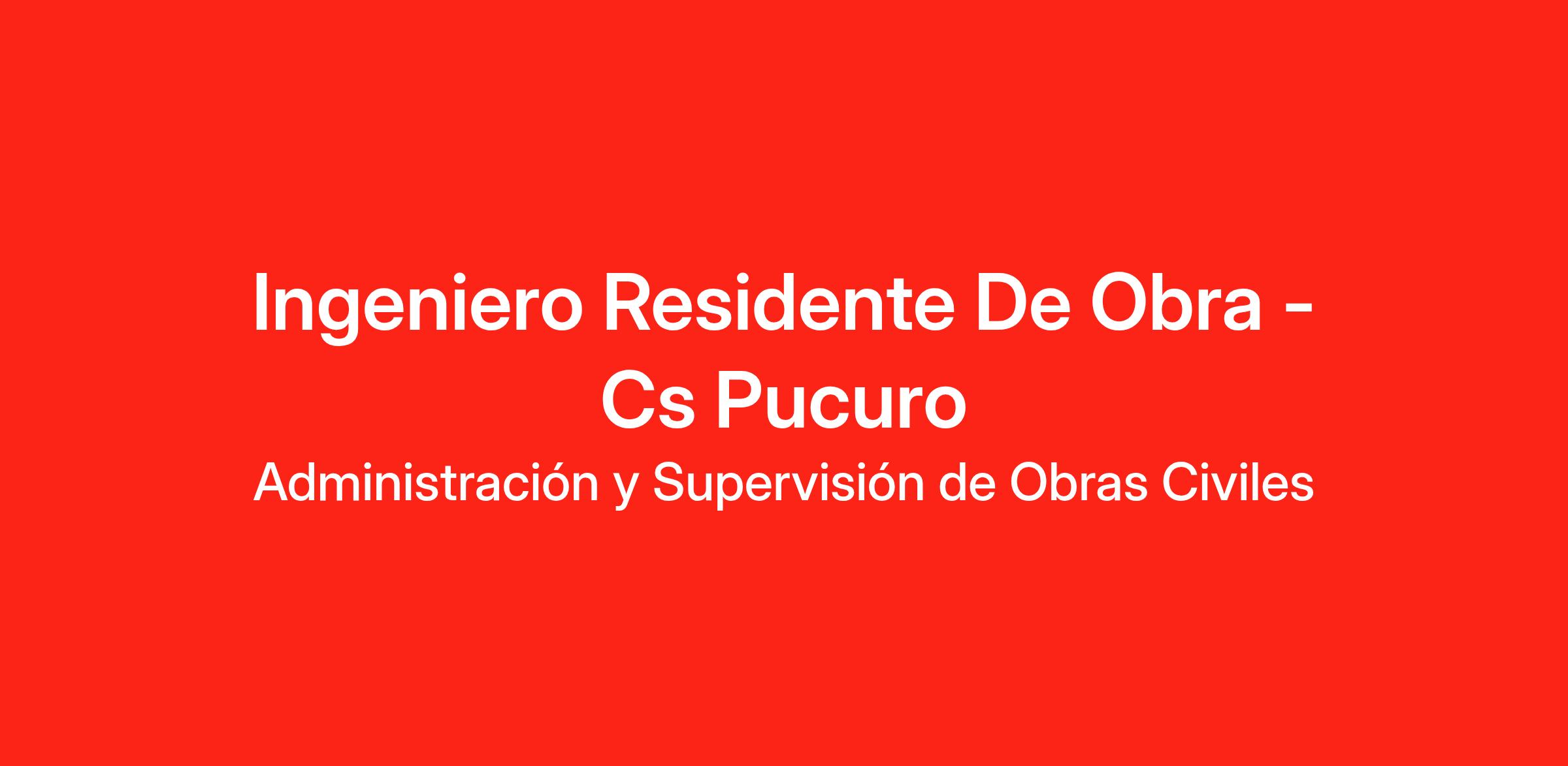 Ingeniero Residente De Obra - Cs Pucuro